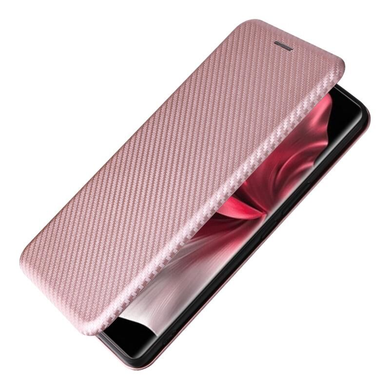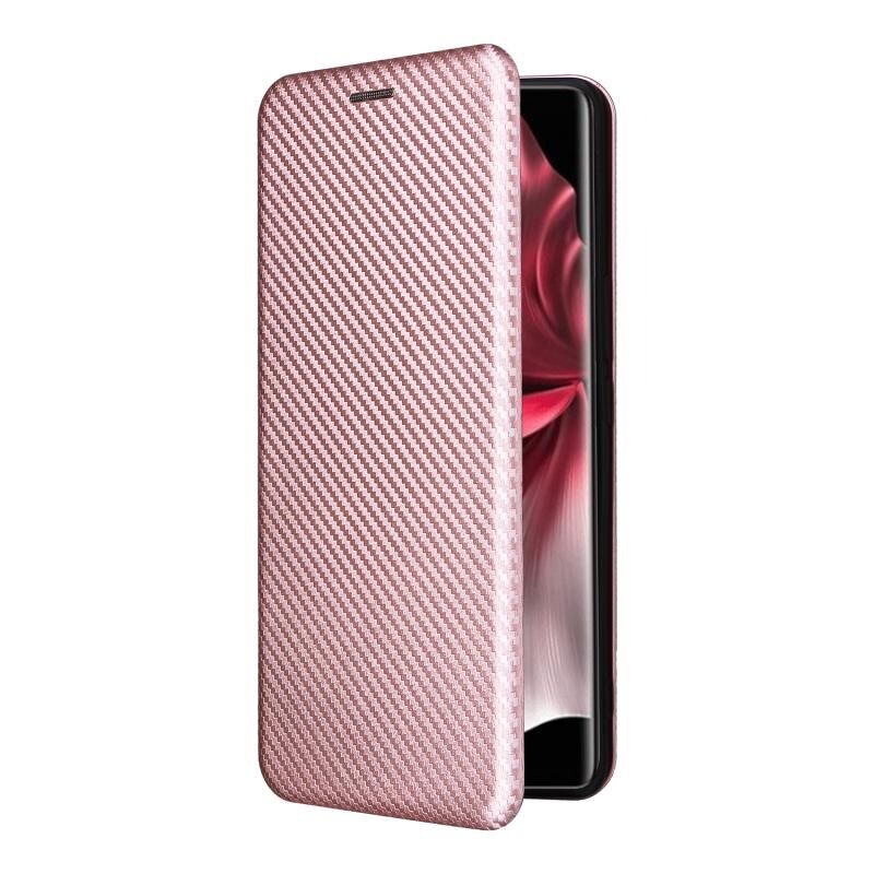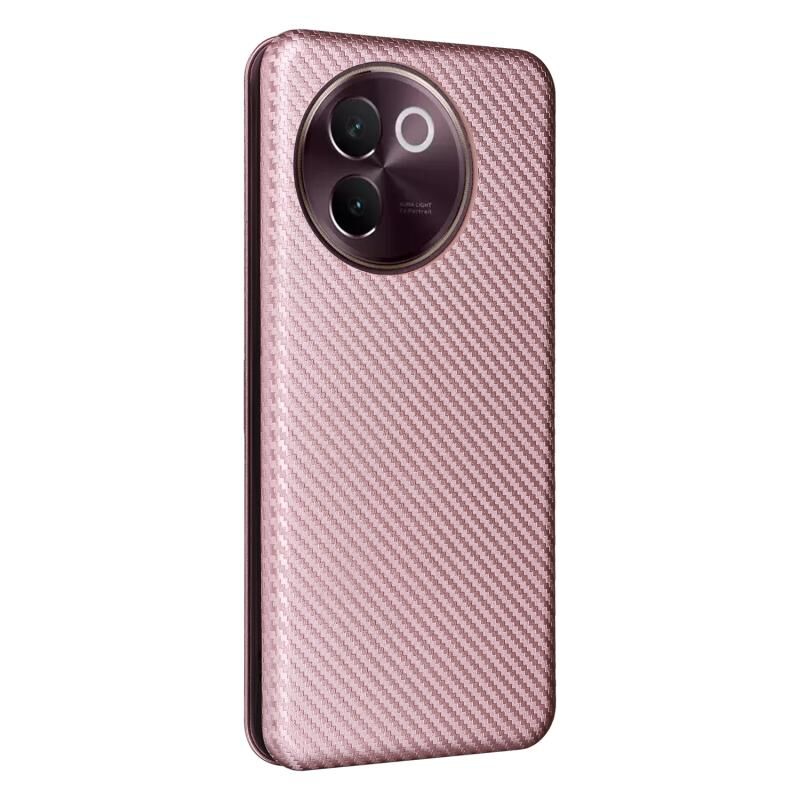 Θήκη τηλεφώνου από δέρμα με υφή ανθρακονημάτων για vivo V30e (Ροζ)