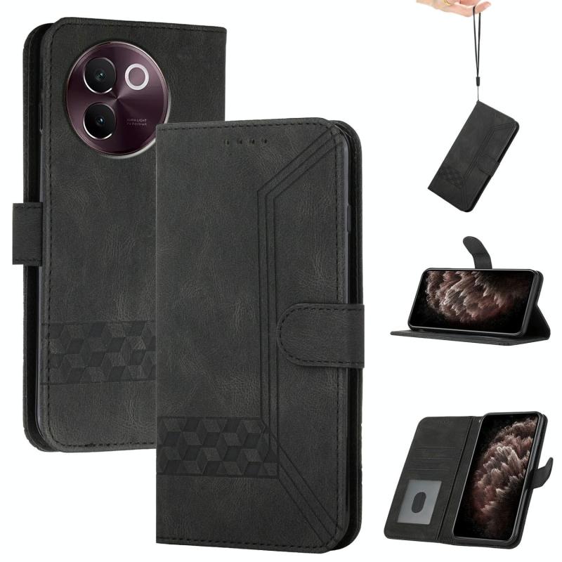 For vivo V30e Cubic Skin Feel Flip Leather Phone Case(Black)
