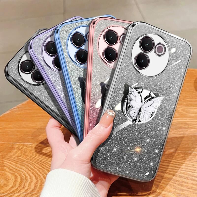 Για vivo V30e Επιμεταλλωμένο διαβάθμιση Glitter πεταλούδα κάτοχος TPU τηλέφωνο υπόθεση (μωβ)