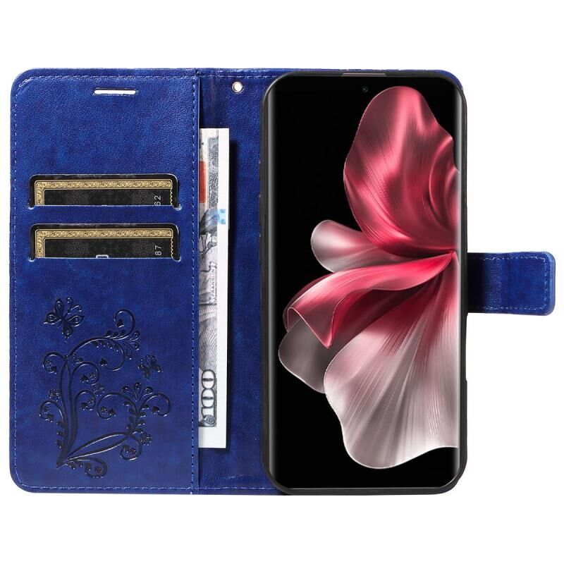 Θήκη τηλεφώνου από δέρμα με ανάγλυφο σχέδιο 3D πεταλούδας, τύπου flip, για vivo V30E / V40 Lite Global (Μπλε)