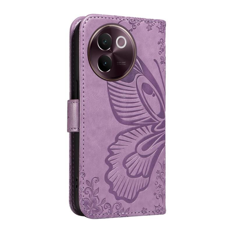 Θήκη τηλεφώνου από δέρμα με ανάγλυφο σχέδιο πεταλούδας Swallowtail για vivo V30E / V40 Lite Global (Μωβ)