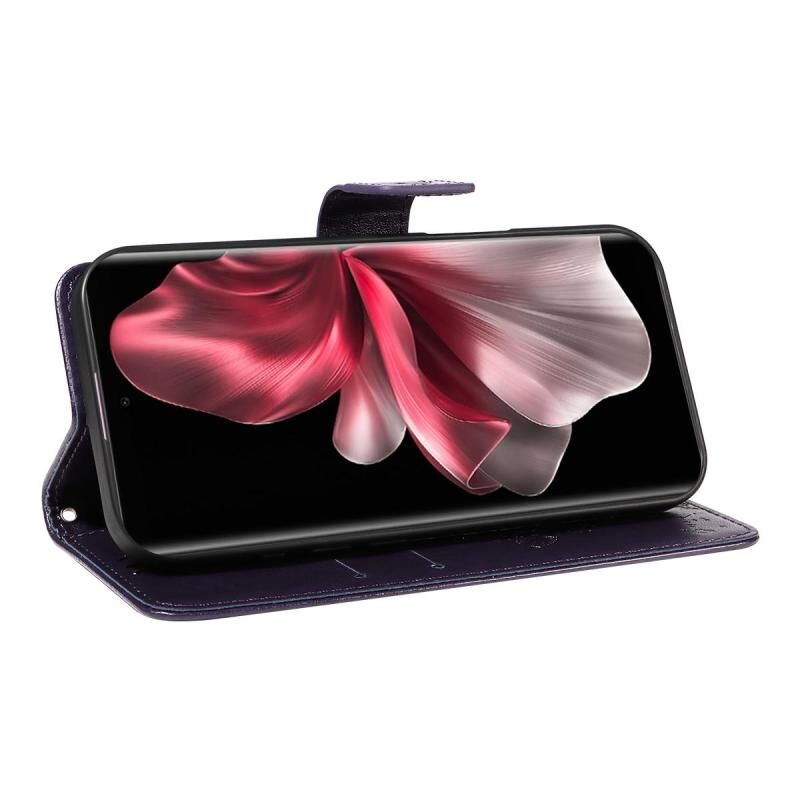 Θήκη τηλεφώνου από δέρμα με σχέδιο δέντρου και γάτας για vivo V30E / V40 Lite (Ροζ)