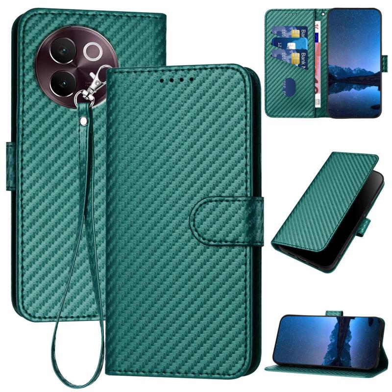 For vivo V30e YX0070 Carbon Fiber Buckle Leather Phone Case with Lanyard(Dark Green)