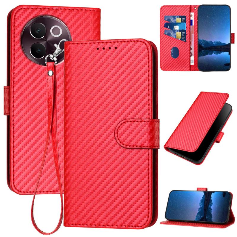 For vivo V30e YX0070 Carbon Fiber Buckle Leather Phone Case with Lanyard(Red)