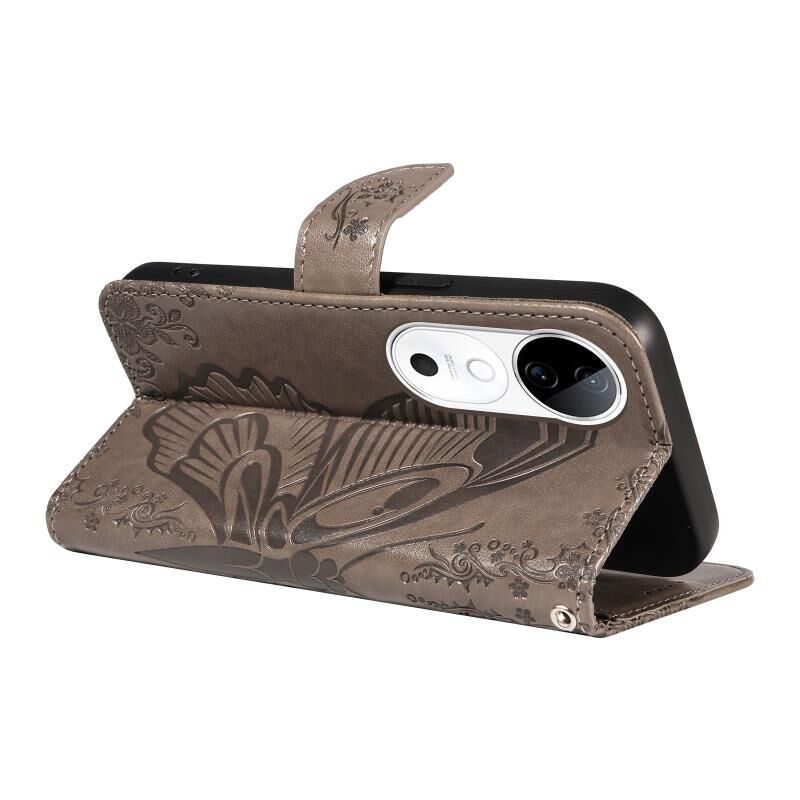 Θήκη τηλεφώνου από δέρμα με ανάγλυφο σχέδιο πεταλούδας για vivo V40 5G (Μπλε)