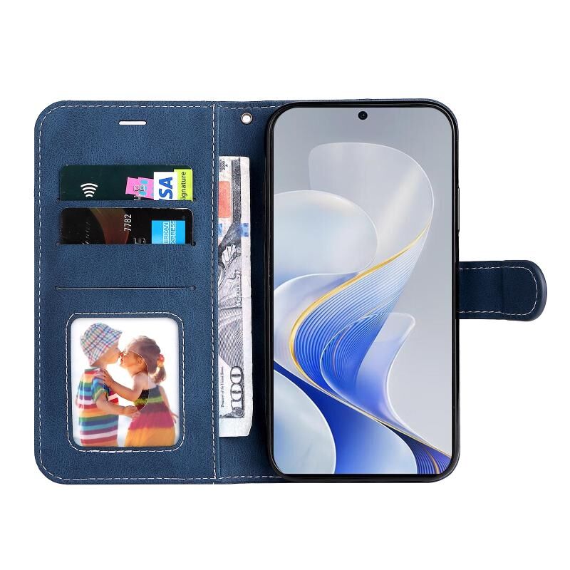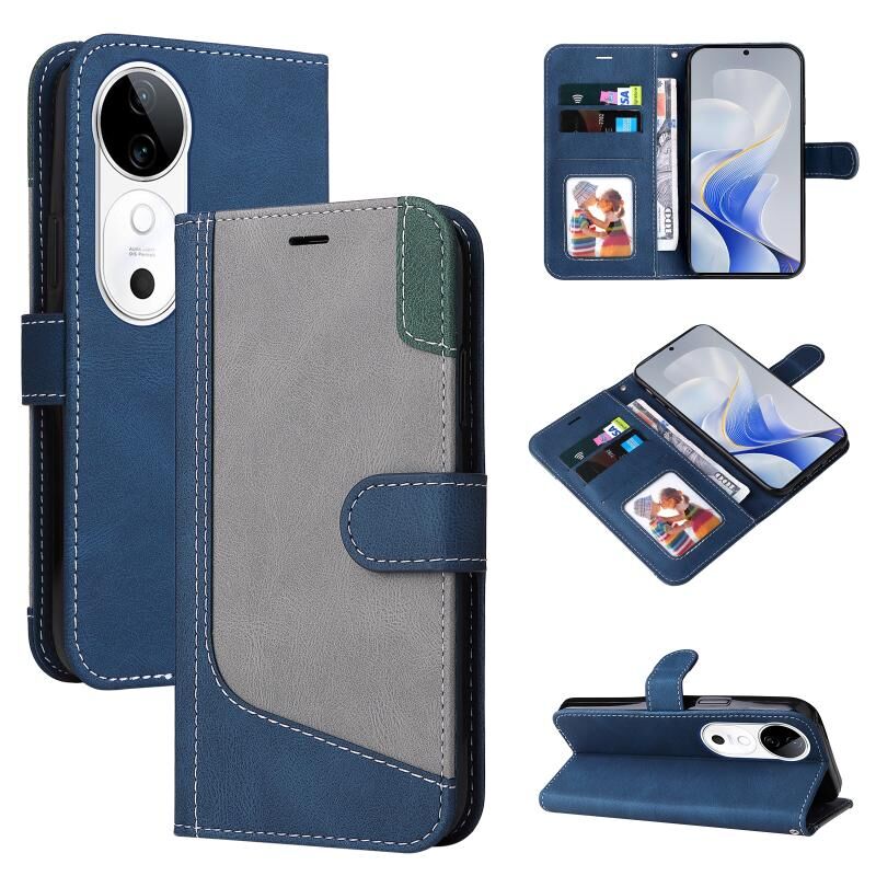 Για vivo V40 5G Τρεις χρώμα Splicing δέρμα τηλέφωνο υπόθεση (Μπλε)