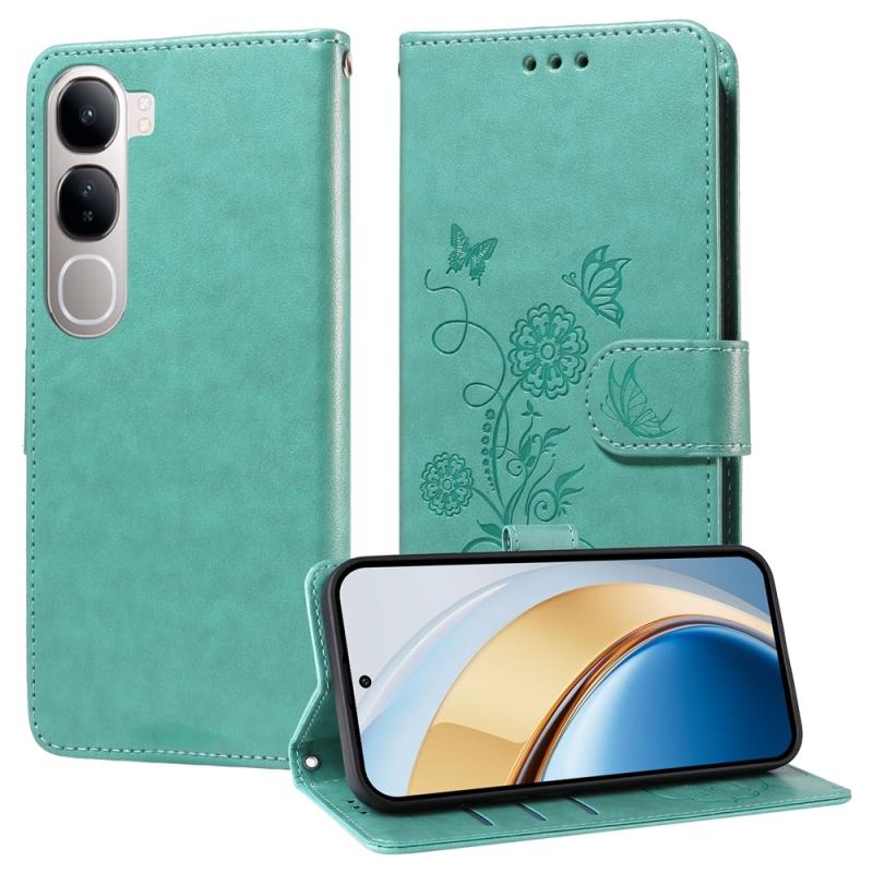 Θήκη τηλεφώνου από δέρμα με ανάγλυφα σχέδια πεταλούδας και λουλουδιών για vivo V40 Lite 4G / 5G IDN (Μωβ)