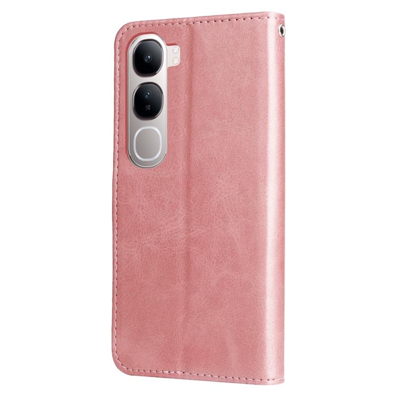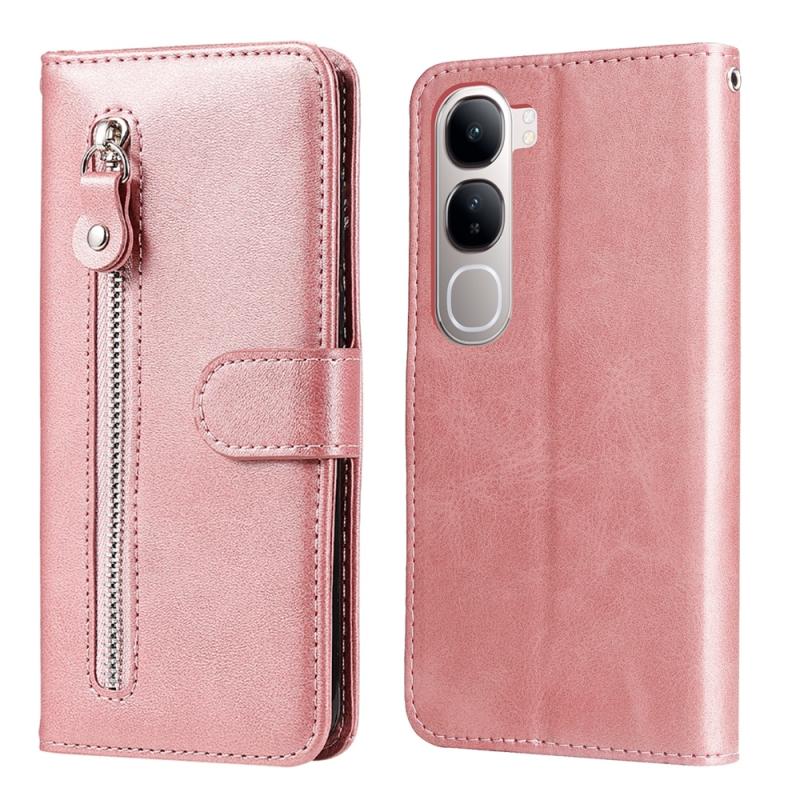 Θήκη τηλεφώνου από δέρμα με υφή μοσχαριού και φερμουάρ για vivo V40 Lite 4G / 5G IDN (Χρυσορόδινο)