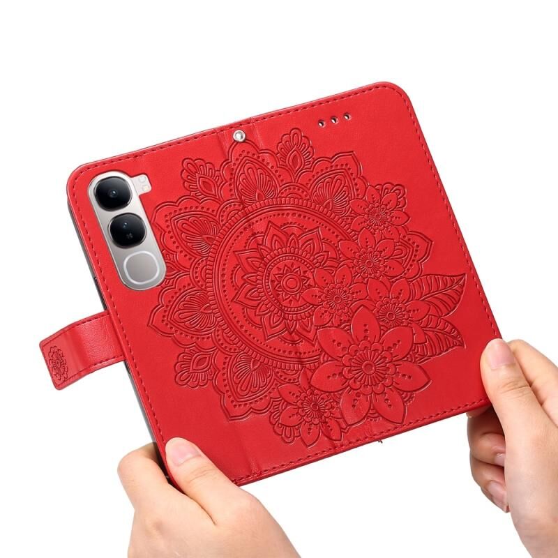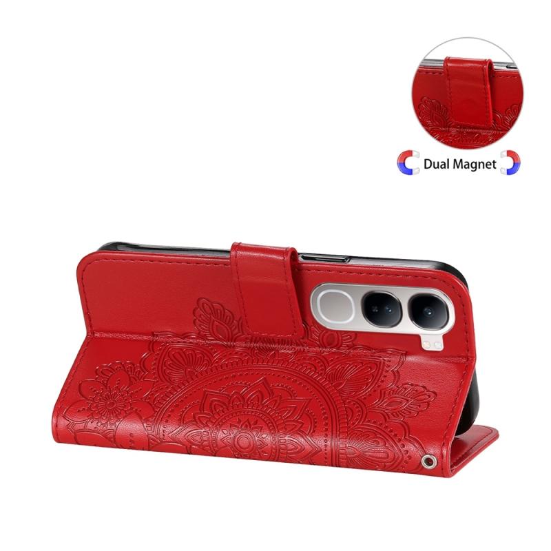 Θήκη τηλεφώνου από δέρμα με ανάγλυφα επτά πέταλα για vivo V40 Lite 4G / 5G IDN (Ανοιχτό Μωβ)