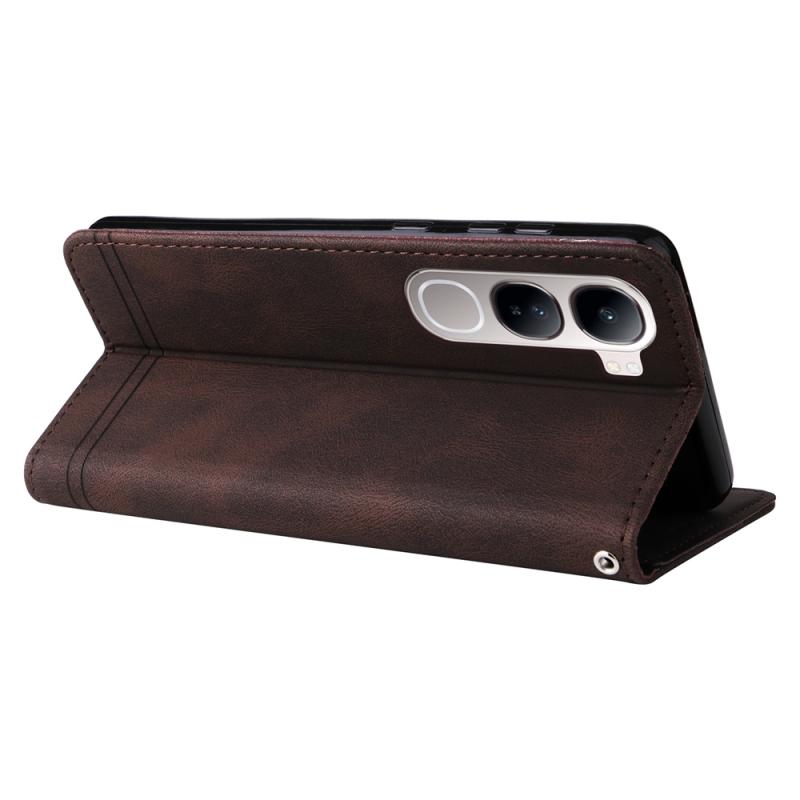 For vivo V40 Lite 4G / 5G IDN Skin Feel Life Tree Metal Button Leather Phone Case(Brown)