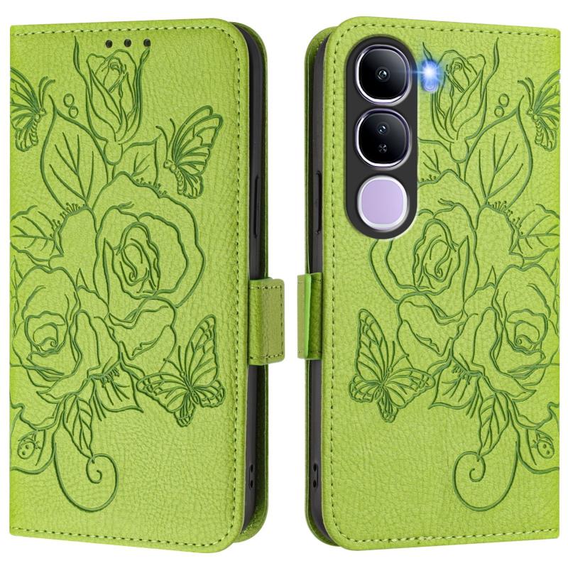 Θήκη τηλεφώνου δερμάτινη με ανάγλυφο σχέδιο και προστασία RFID κατά του κλοπής για vivo V40 Lite 5G IDN (Πράσινη)