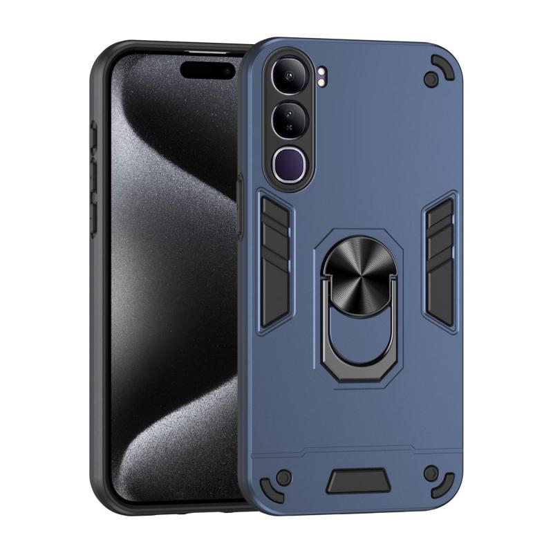For vivo V40 Lite 5G IDN Shockproof Metal Ring Holder Phone Case(Blue)
