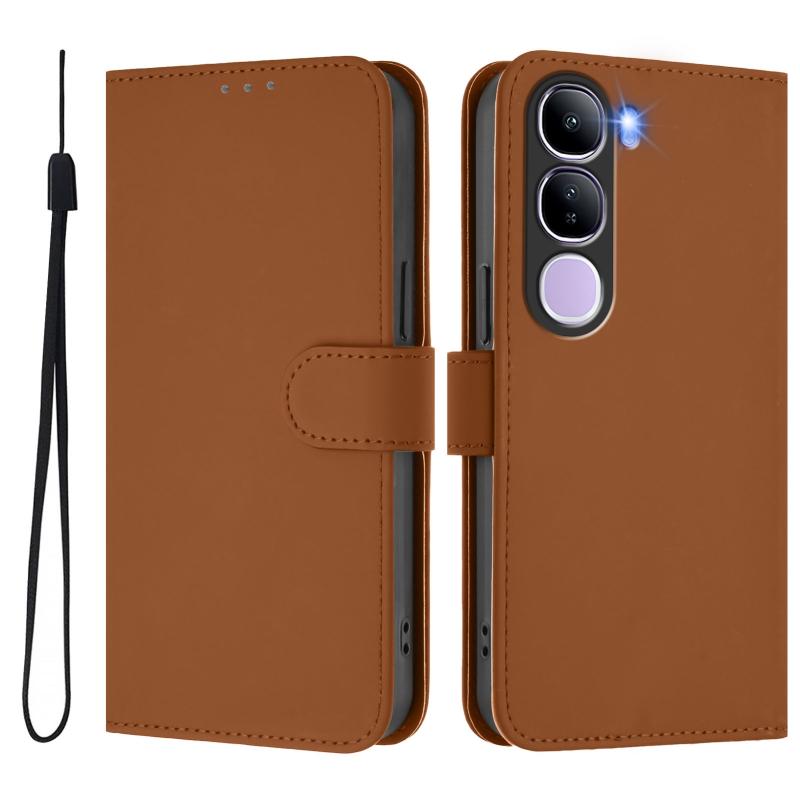 For vivo V40 Lite 5G IDN Skin Feel Solid Color Leather Phone Case with Lanyard(Brown)