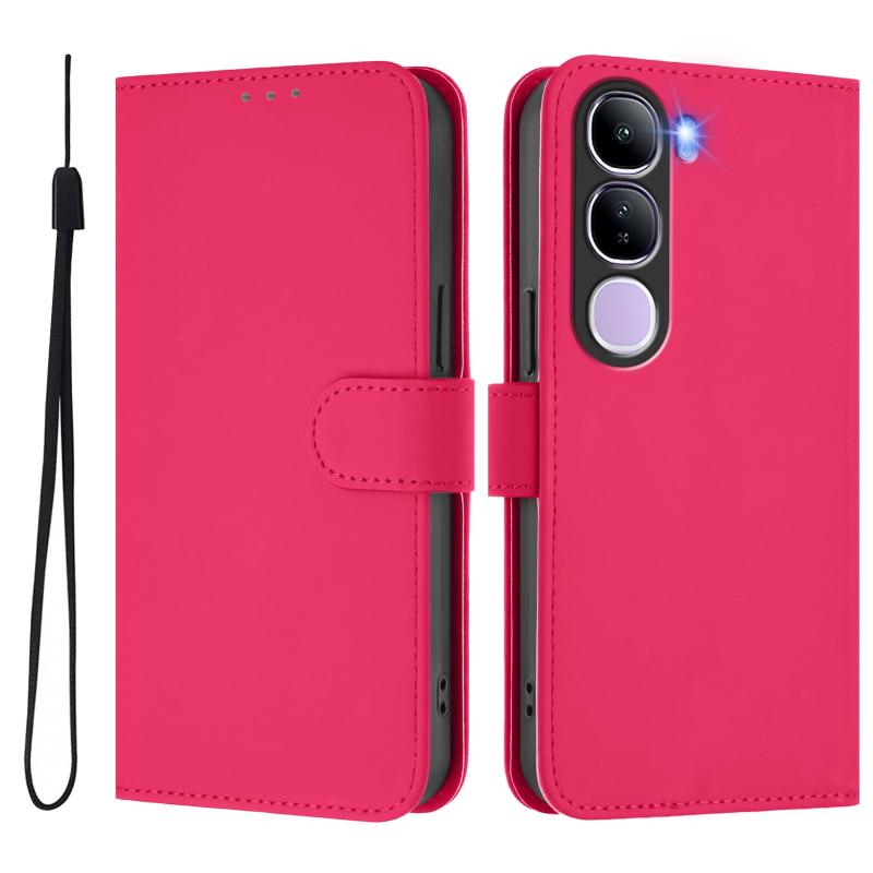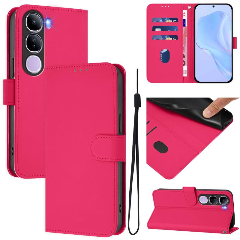 For vivo V40 Lite 5G IDN Skin Feel Solid Color Leather Phone Case with Lanyard(Rose Red)