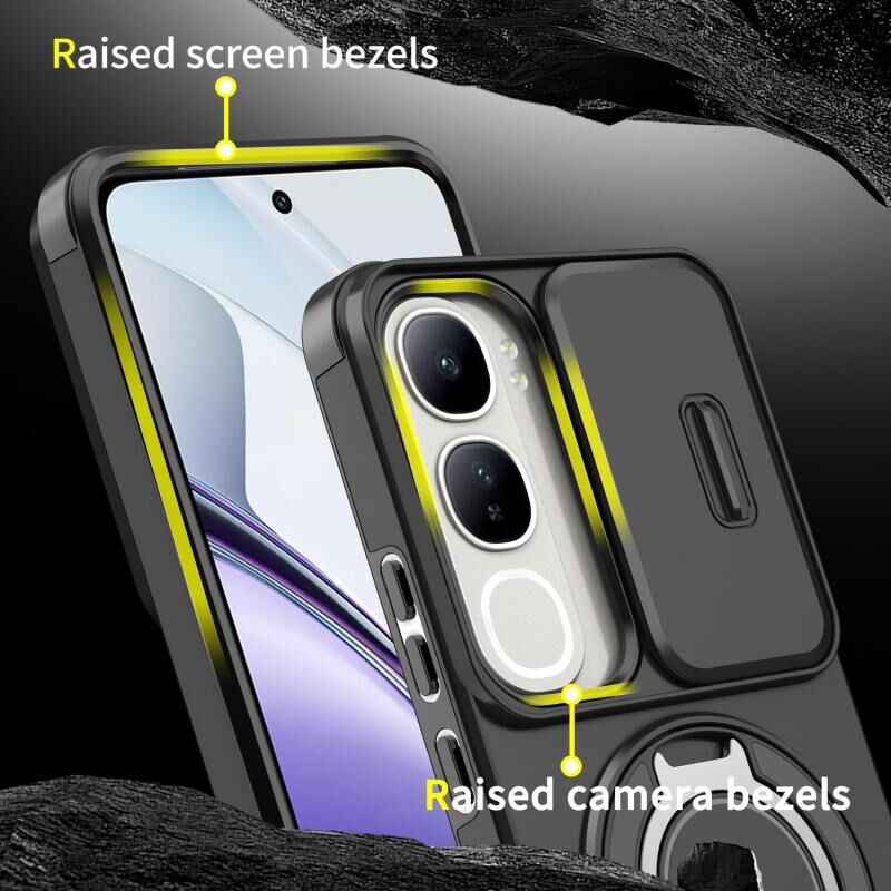 Θήκη τηλεφώνου για vivo V40 Lite 5G με ολισθητικό προστατευτικό κάμερας και δακτύλιο στήριξης (ρόζ)