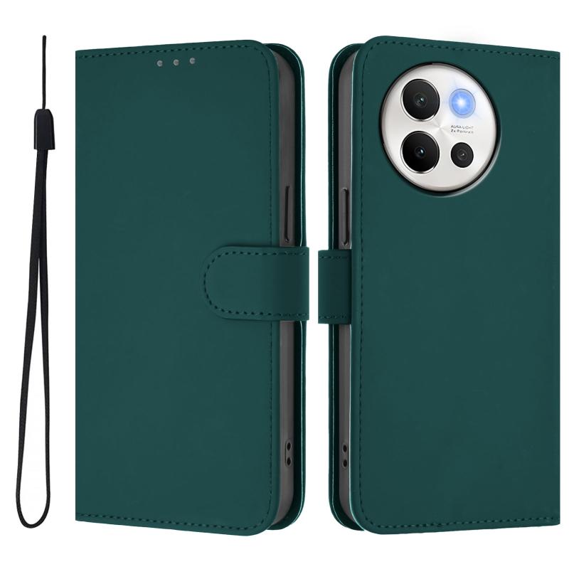 For vivo V40 Lite 5G / V30E 5G Global Skin Feel Solid Color Leather Phone Case with Lanyard(Dark Green)