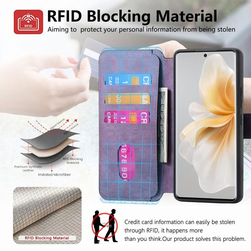 Θήκη για vivo V40 Lite CaseNeo MagSafe RFID Αντικλεπτική Ρετρό Δερμάτινη Θήκη Τηλεφώνου (Μαύρο) (Μωβ)
