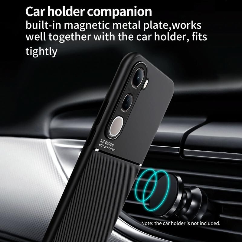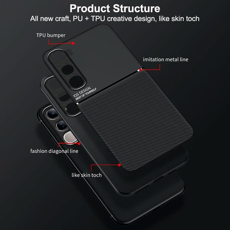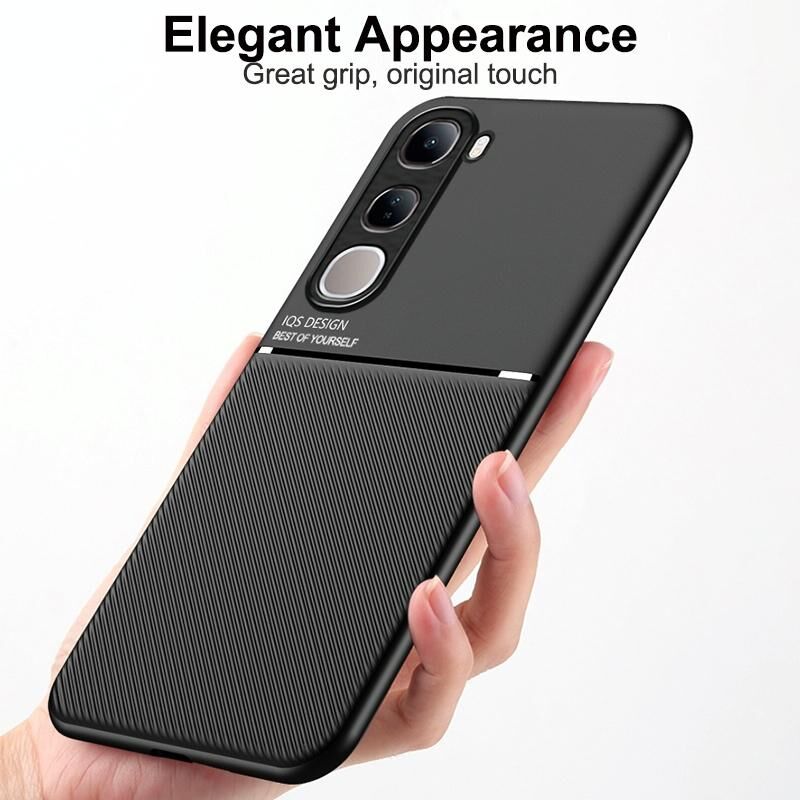 Θήκη τηλεφώνου για vivo V40 Lite Classic Tilt Strip Grain Magnetic PC Hybrid TPU (Μαύρο)