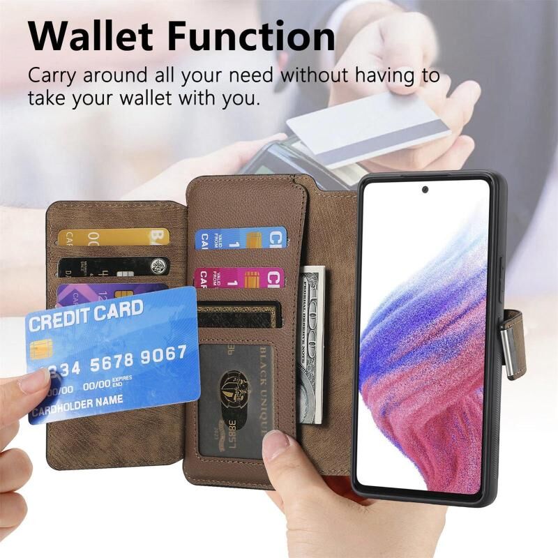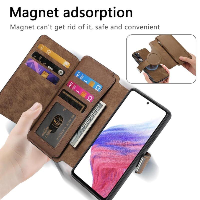 2. Λειτουργία πορτοφολιού με φερμουάρ: Η δερμάτινη θήκη είναι εξοπλισμένη με πορτοφόλι με φερμουάρ και υποδοχές για κάρτες για την τοποθέτηση καρτών και μικρού ποσού μετρητών.