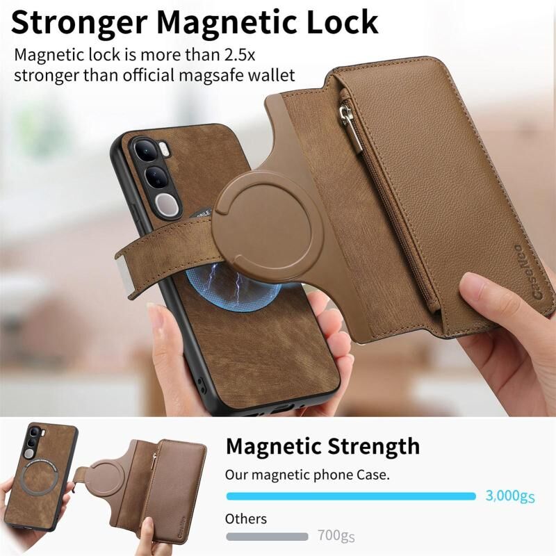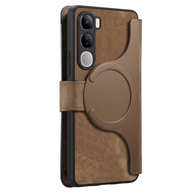 Θήκη για vivo V40 Lite / V30e CaseNeo MagSafe RFID Αντικλεπτική με Φερμουάρ και Δερμάτινη Ρετρό Εμφάνιση (Μαύρο) (Καφέ)