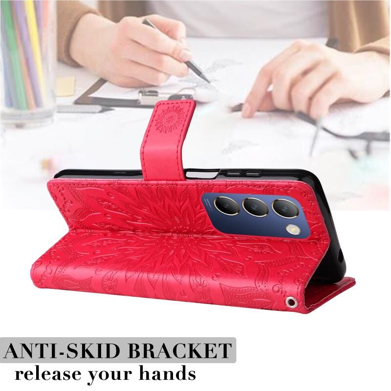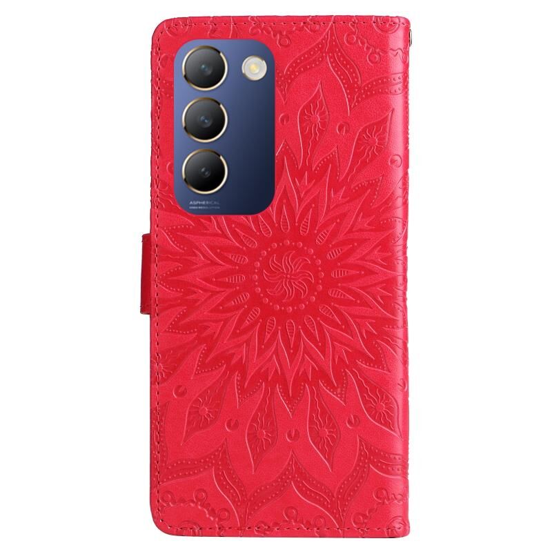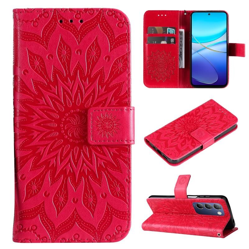 Για το vivo V40 SE 5G / Y100 IDN ανάγλυφο ηλιοτρόπιο μοτίβο Flip δέρμα τηλέφωνο υπόθεση (κόκκινο)