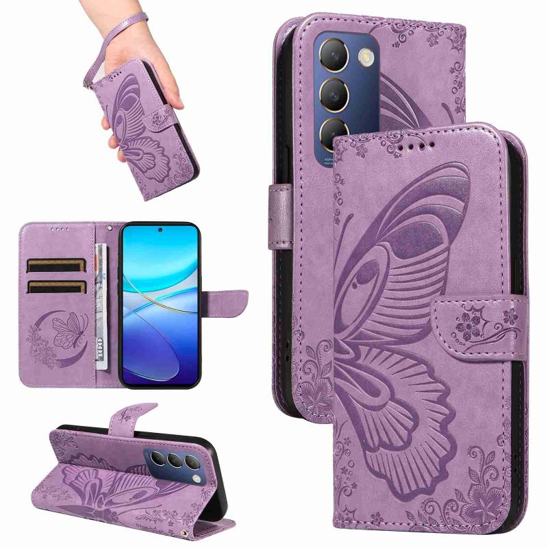 For vivo V40 SE 5G / Y100 IDN / Y200e Swallowtail Butterfly Embossed Leather Phone Case(Purple)