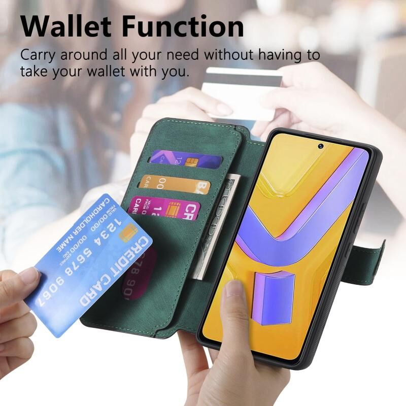 2. Λειτουργία πορτοφολιού: Η δερμάτινη θήκη είναι εξοπλισμένη με υποδοχές για κάρτες και ένα μικρό ποσό μετρητών.