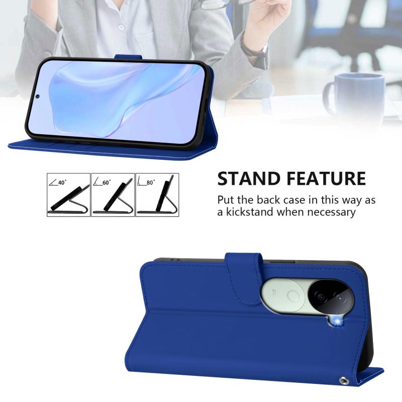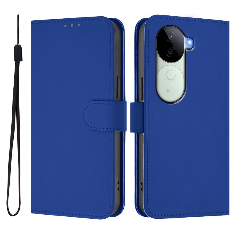 For vivo V40E 5G India / iQOO Z9s 5G Skin Feel Solid Color Leather Phone Case with Lanyard(Dark Blue)