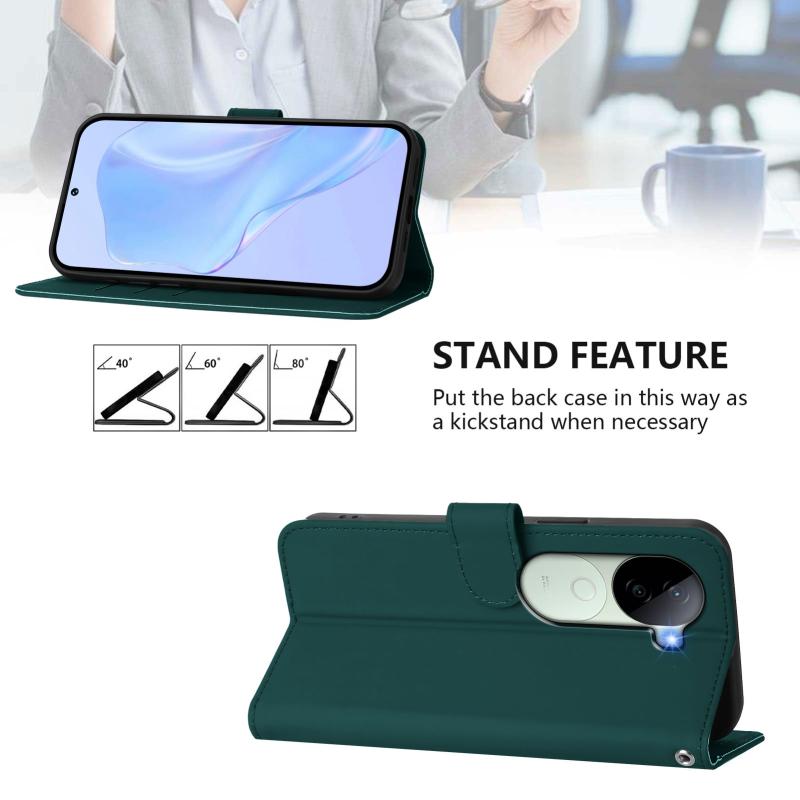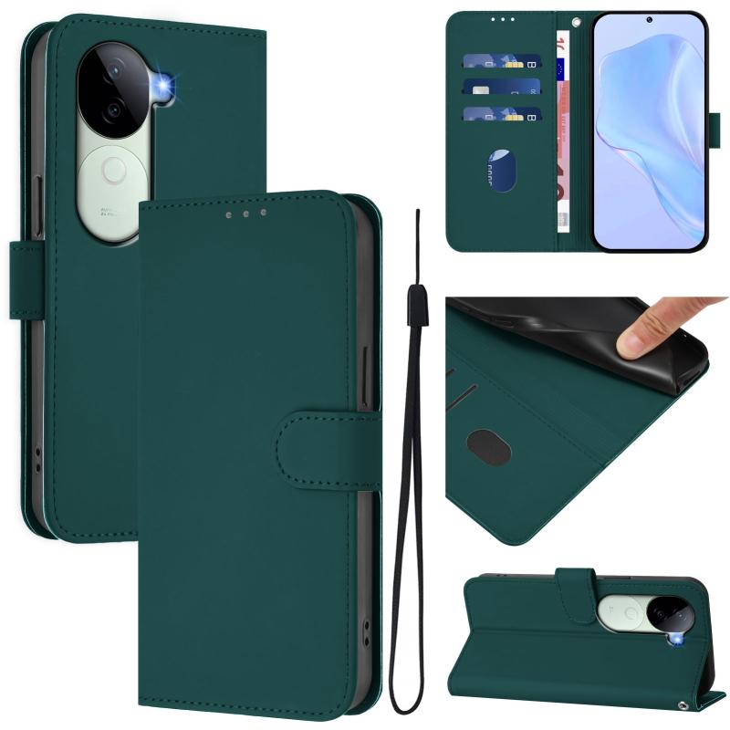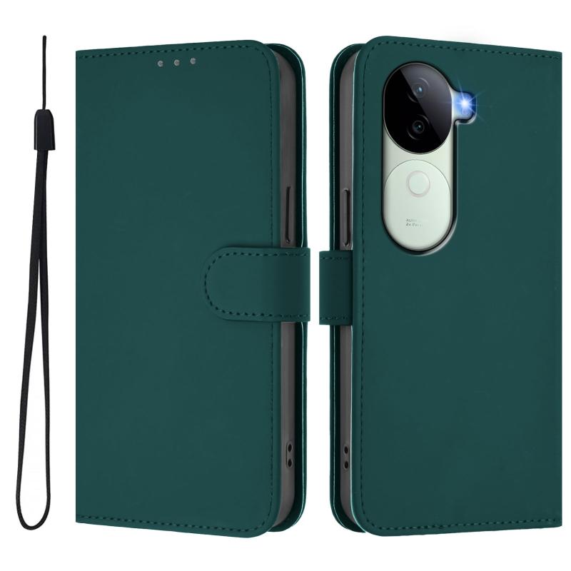 Θήκη τηλεφώνου από δέρμα με αίσθηση, συμπαγές χρώμα για vivo V40E 5G India / iQOO Z9s 5G με κορδόνι (Καφέ)