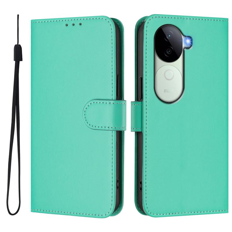 For vivo V40E 5G India / iQOO Z9s 5G Skin Feel Solid Color Leather Phone Case with Lanyard(Green)