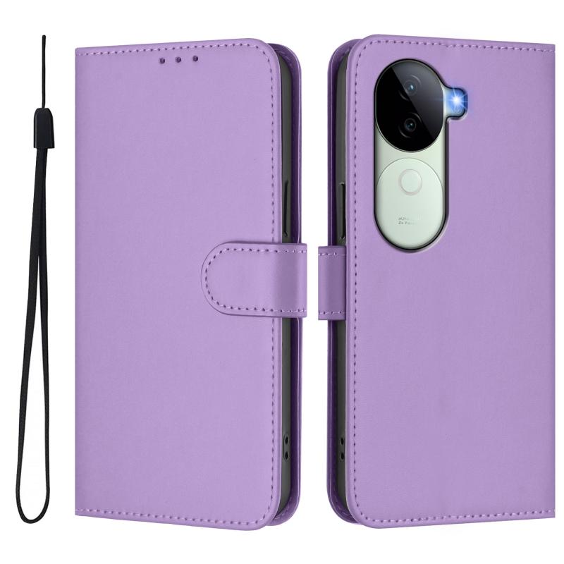 For vivo V40E 5G India / iQOO Z9s 5G Skin Feel Solid Color Leather Phone Case with Lanyard(Lavender Purple)