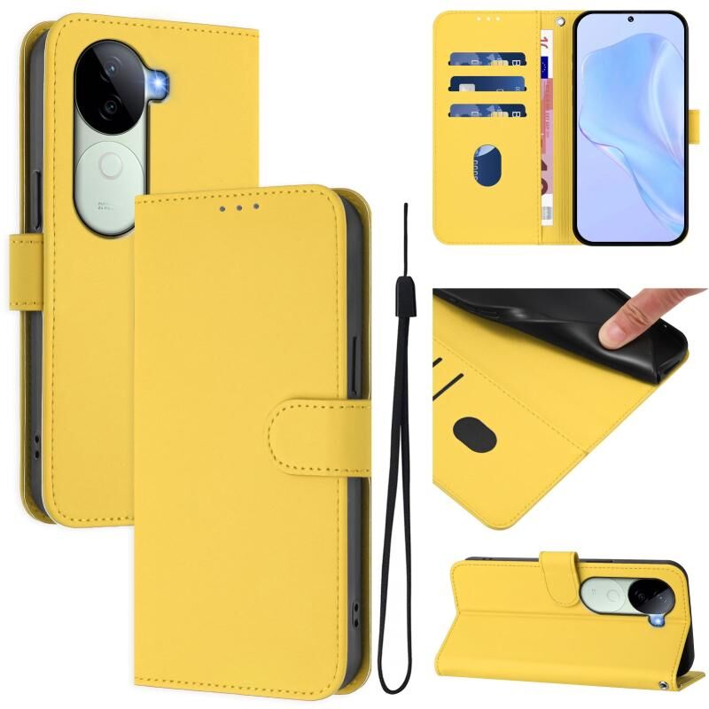 Θήκη τηλεφώνου από δέρμα με αίσθηση, συμπαγές χρώμα για vivo V40E 5G India / iQOO Z9s 5G με κορδόνι (Καφέ)