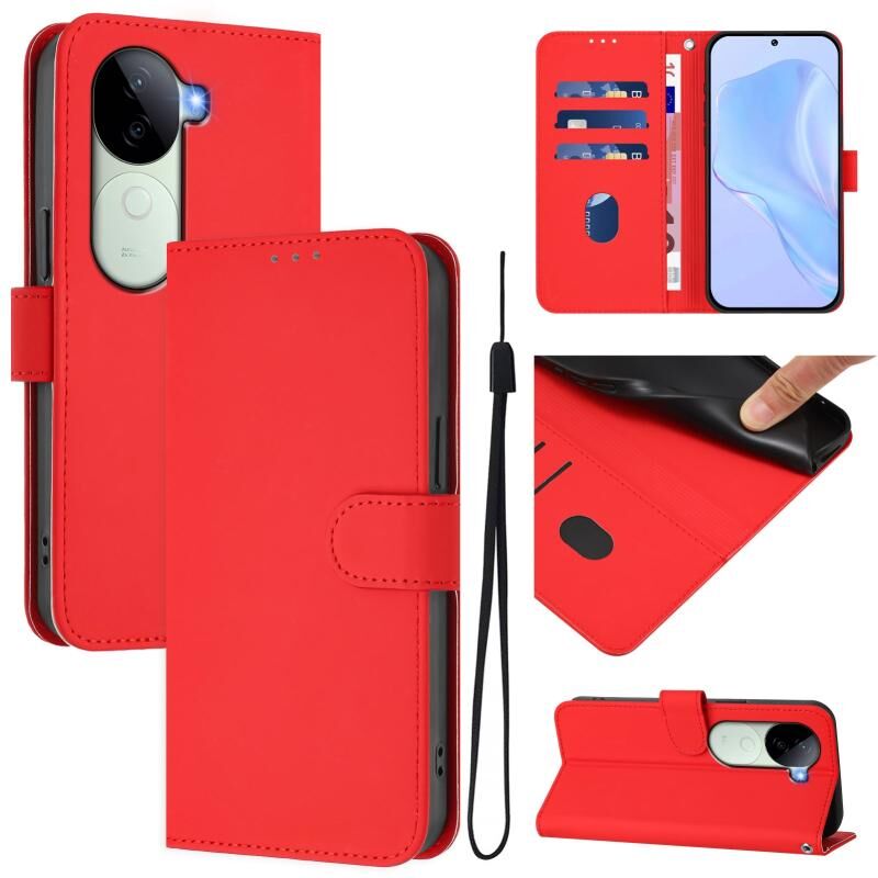 Θήκη τηλεφώνου από δέρμα με αίσθηση, συμπαγές χρώμα για vivo V40E 5G India / iQOO Z9s 5G με κορδόνι (Καφέ)