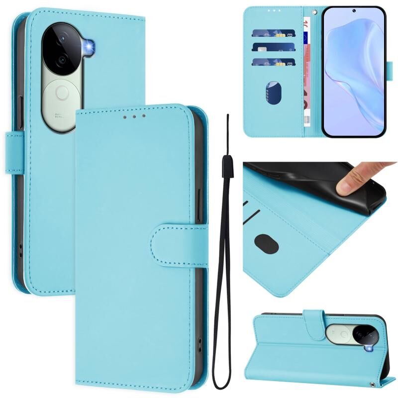Θήκη τηλεφώνου από δέρμα με αίσθηση, συμπαγές χρώμα για vivo V40E 5G India / iQOO Z9s 5G με κορδόνι (Καφέ)