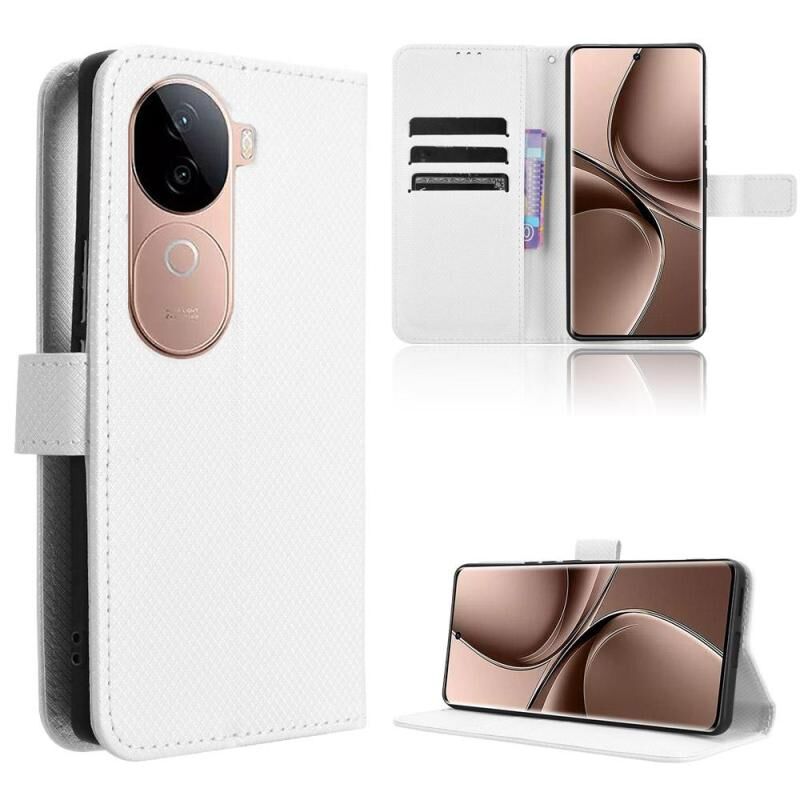 Θήκη τηλεφώνου από δέρμα με διαμαντένια υφή για vivo V40e 5G / iQOO Z9S 5G (Λευκό)