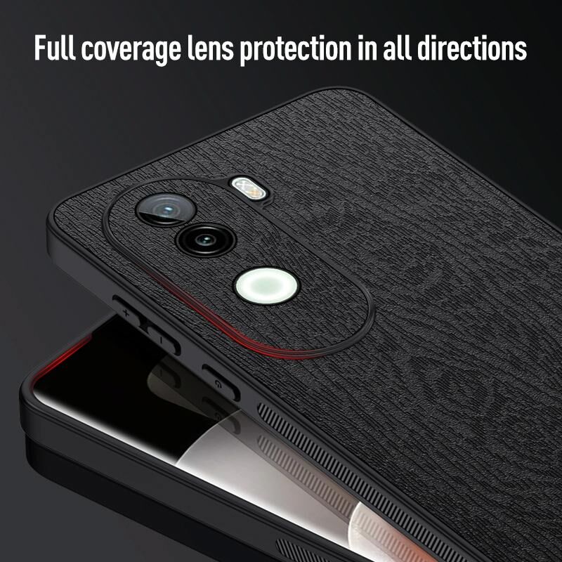 Για το vivo V40e Tree Bark δερμάτινη αντικραδασμική θήκη τηλεφώνου (Γκρι)