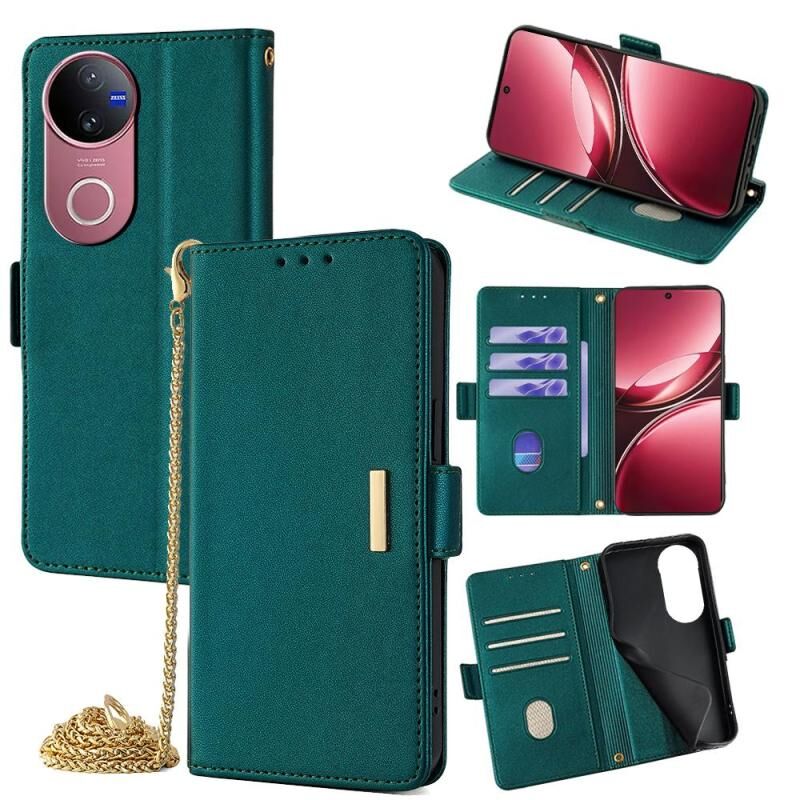 Θήκη τηλεφώνου για vivo V50 5G με αλυσίδα και δέρμα (Μαύρο)