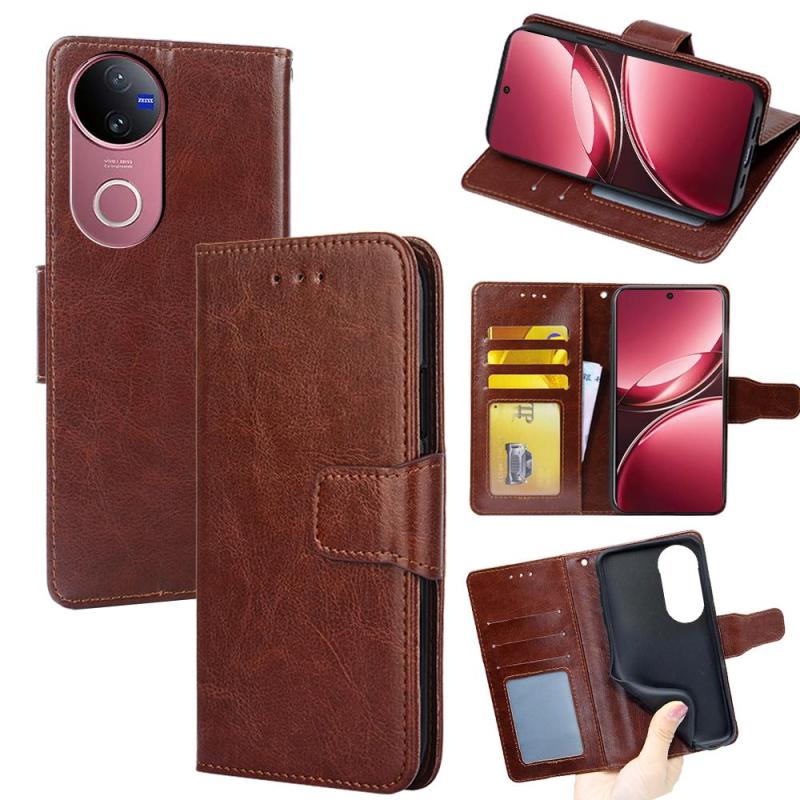 Θήκη τηλεφώνου από δέρμα με κρυσταλλική υφή για vivo V50 5G (Καφέ)