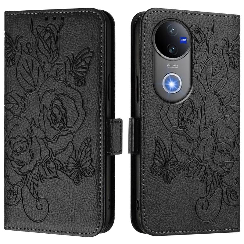 For vivo V50 5G Global Embossed Rose RFID Anti-theft Leather Phone Case(Black)