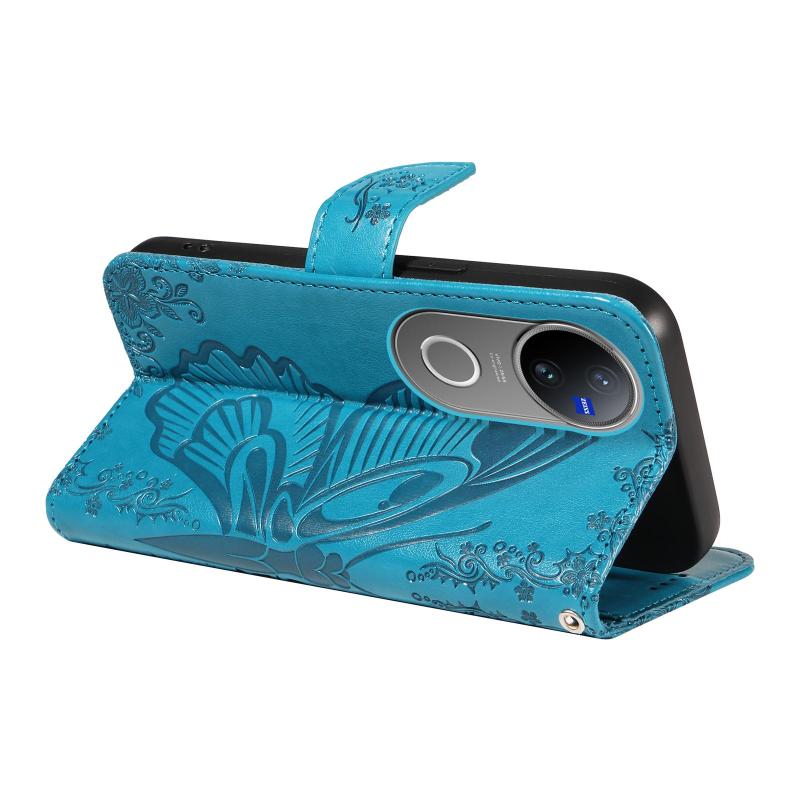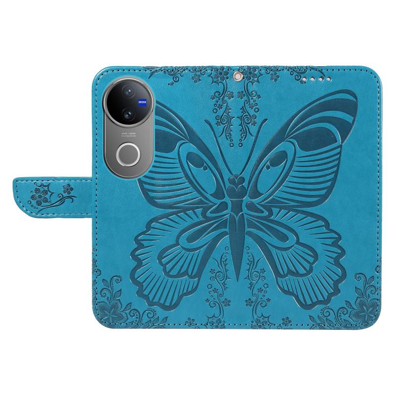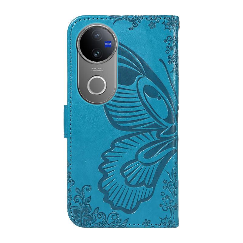 For vivo V50 5G Global Swallowtail Butterfly Embossed Leather Phone Case(Blue)