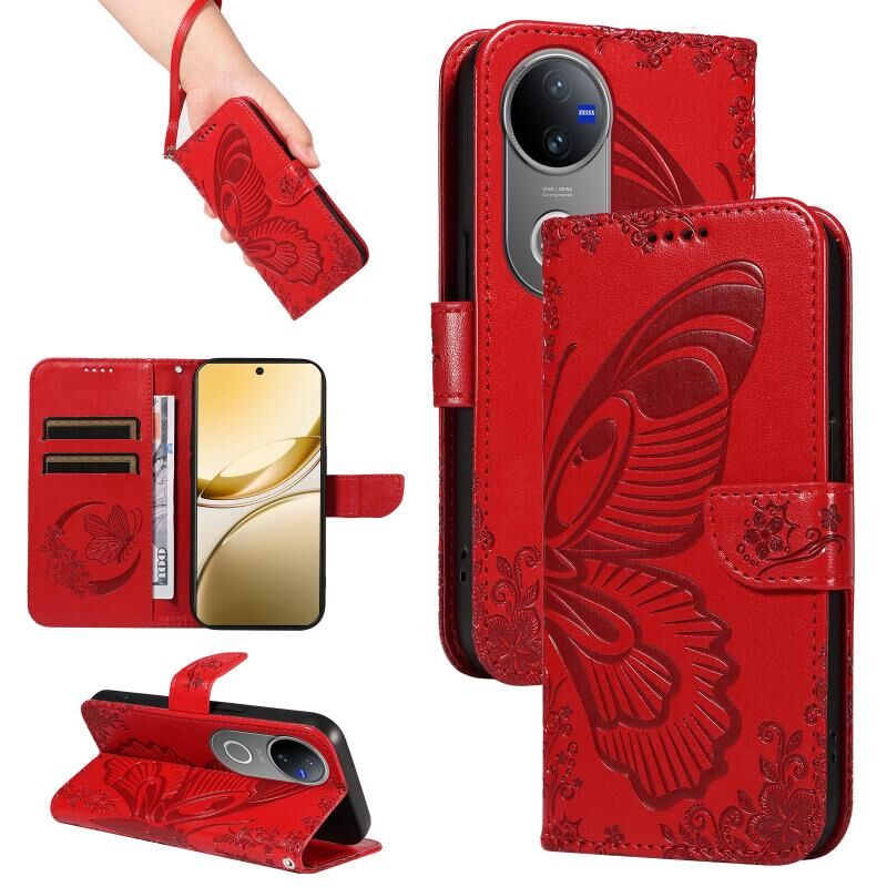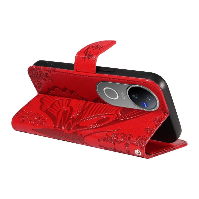 Θήκη τηλεφώνου από δέρμα με ανάγλυφο σχέδιο πεταλούδας Swallowtail για vivo V50 5G (Μπλε)