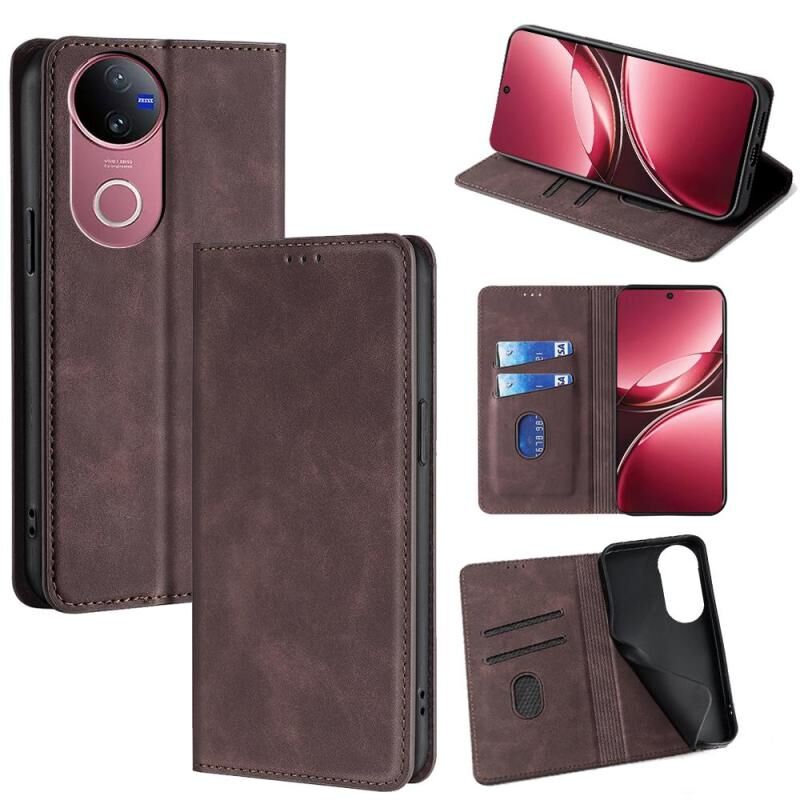 Θήκη τηλεφώνου από δέρμα με μαγνητική αίσθηση για vivo V50 5G (Σκούρο Καφέ)