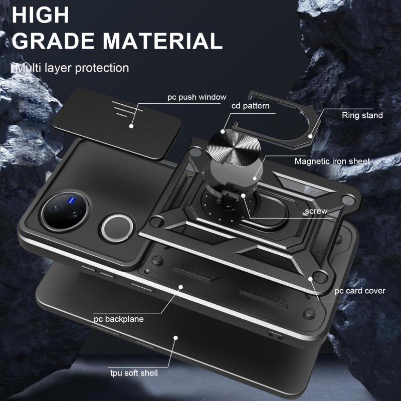 For vivo V50 5G Sliding Camera Cover Design TPU+PC Phone Case(Green)