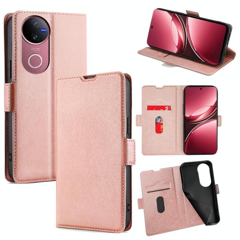 Θήκη τηλεφώνου δέρμα Flip οριζόντια με πλευρική αγκράφα τάσης, εξαιρετικά λεπτή για vivo V50 5G (Ροζ χρυσός)