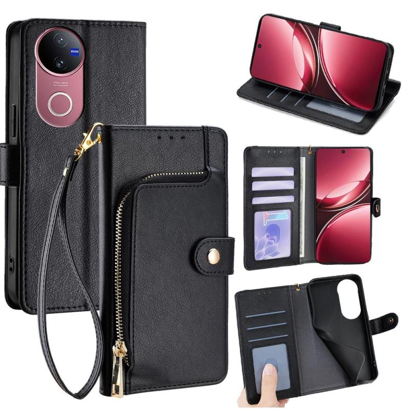 For vivo V50 5G Zipper Bag Leather Phone Case(Black)