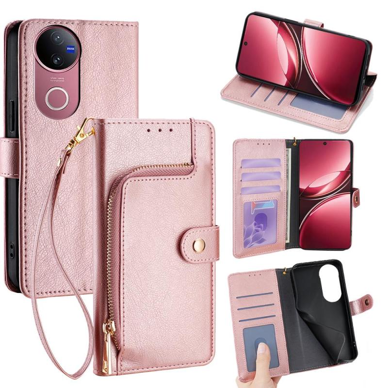 For vivo V50 5G Zipper Bag Leather Phone Case(Rose Gold)