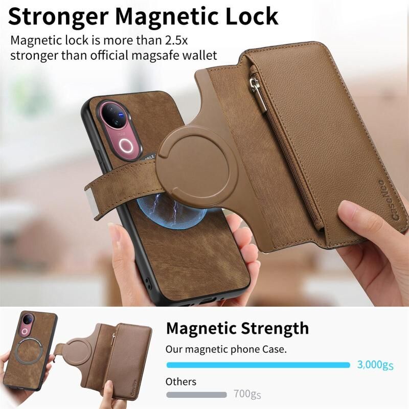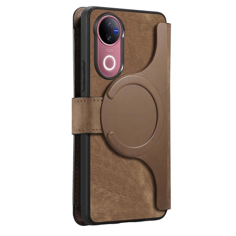 Θήκη για vivo V50 CaseNeo MagSafe RFID Αντικλεπτική με Φερμουάρ, Δερμάτινη Θήκη Τηλεφώνου σε Ρετρό Στυλ (Καφέ) (CaseNeo)