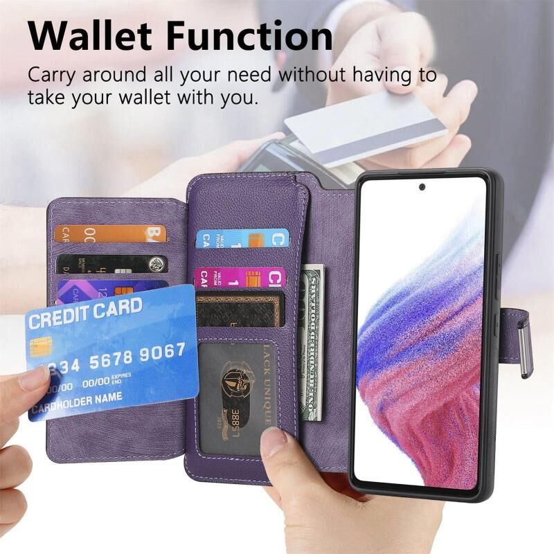2. Λειτουργία πορτοφολιού με φερμουάρ: Η δερμάτινη θήκη είναι εξοπλισμένη με πορτοφόλι με φερμουάρ και υποδοχές για κάρτες για την τοποθέτηση καρτών και μικρού ποσού μετρητών.