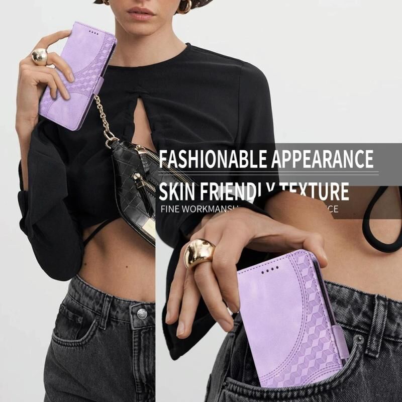 Θήκη τηλεφώνου από δέρμα με ανάγλυφο ρόμβο και αστρικό σχέδιο για vivo V50 Lite 4G / 5G (Μωβ)