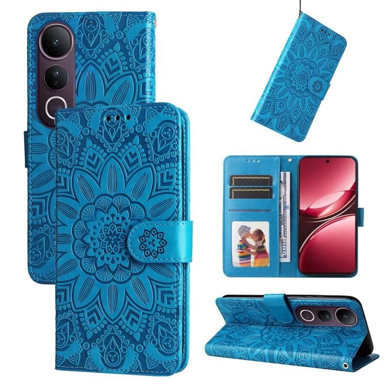 Θήκη τηλεφώνου δερμάτινη με ανάγλυφο ηλίανθο για vivo V50 Lite 4G / 5G (Κόκκινο)